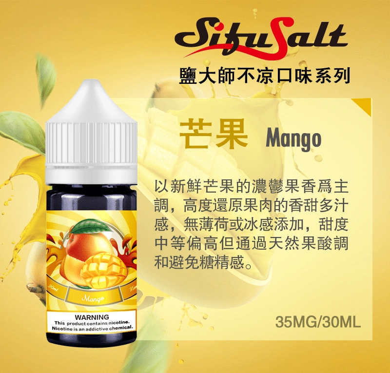 鹽大師不涼煙油,專為追求不涼油的使用者設計! 10種豐富層次口味,告別刺喉涼感,保留純粹香氣與滑順口感。採用高品質尼古丁鹽技術,快速解癮、溫和不咳喉嚨,替菸首選!立即探索您的特色口味。